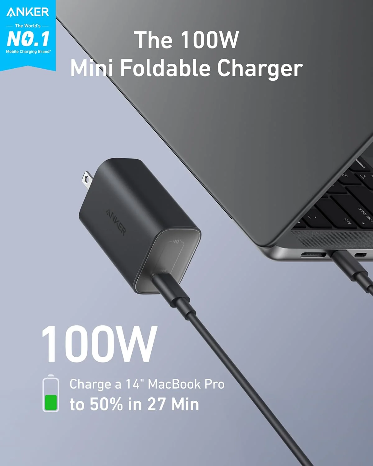 Anker Nano Charger:The 100W Mini Foldable Charger with USB-C Cable